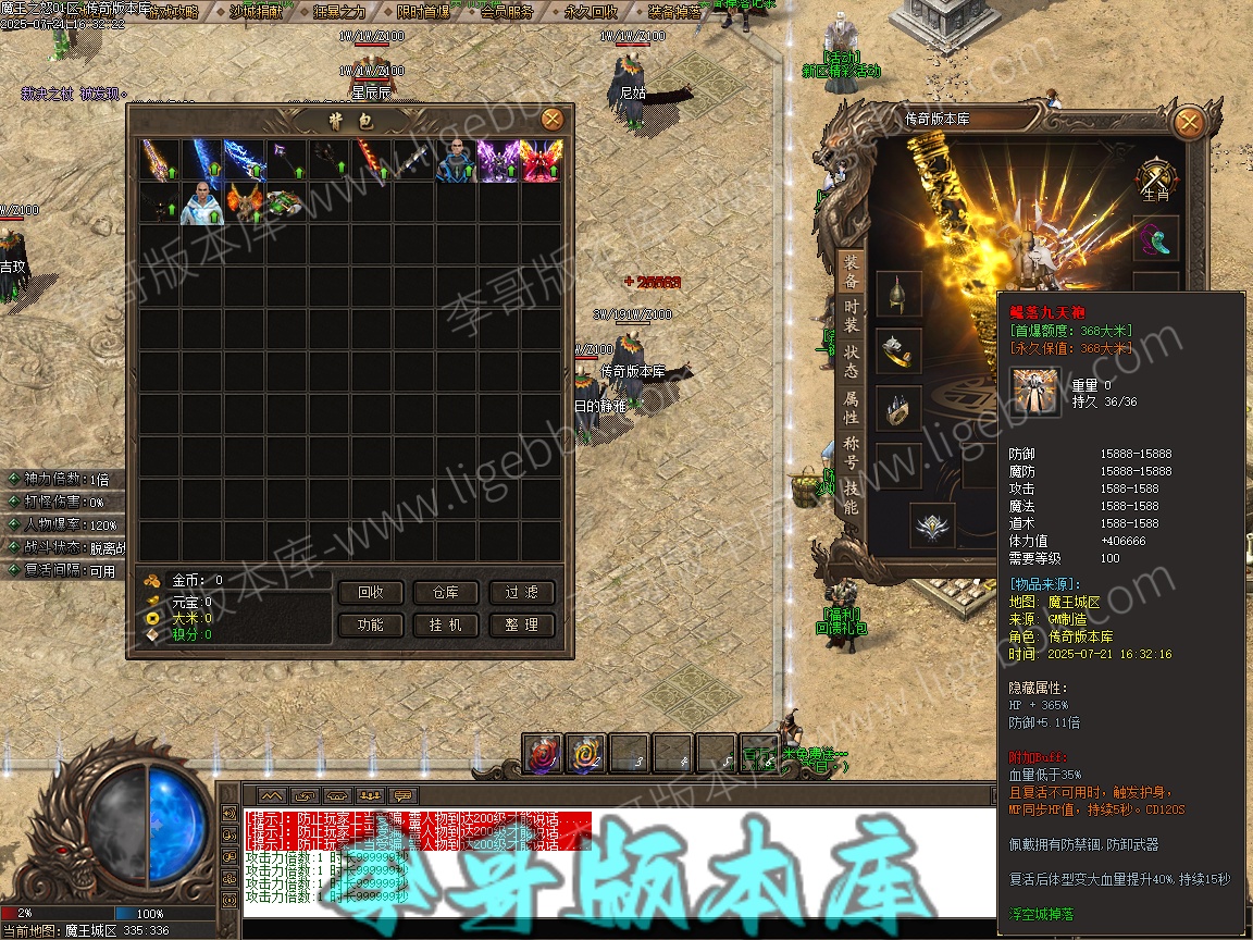 25-061最新7月魔王之怒沉默专属神器攻速单职业客户端-带假人-自动回收-九大陆_新GOM引擎