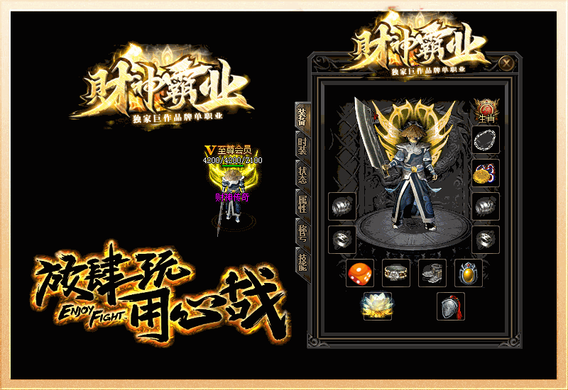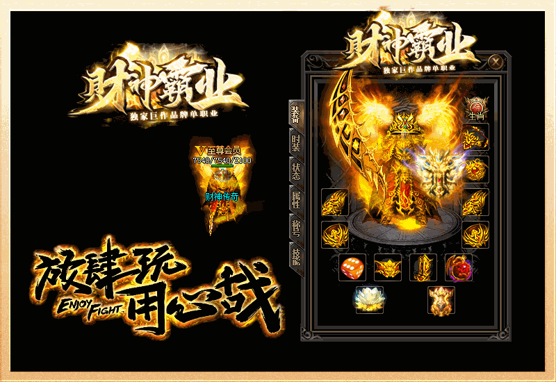 财神比充值1∶10 回收1-11,只卖会员不卖任何元宝装备!