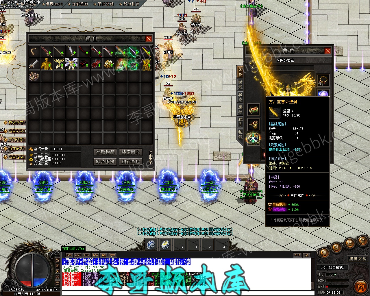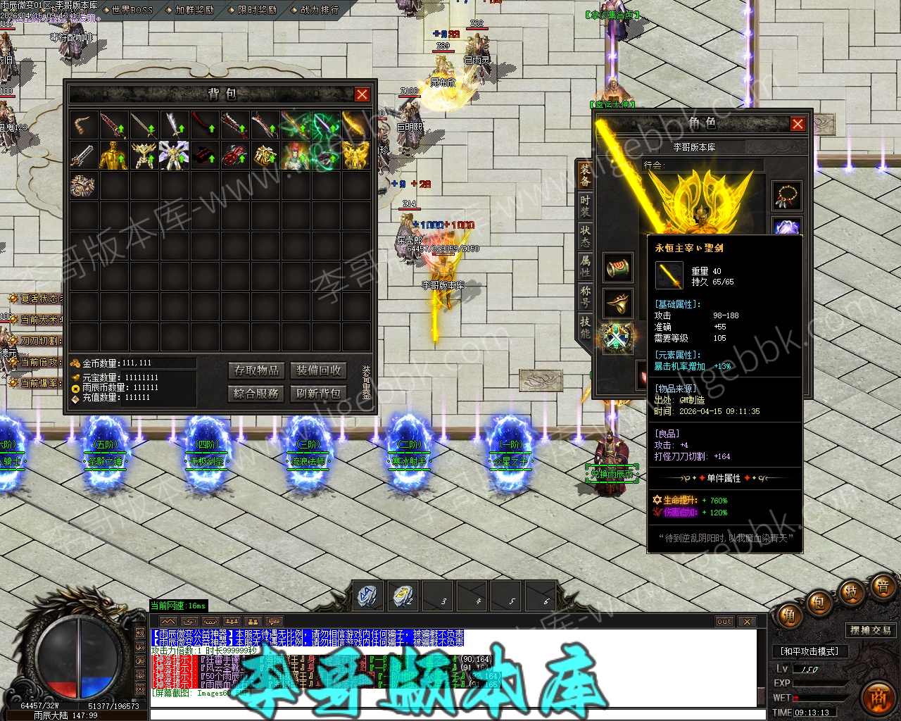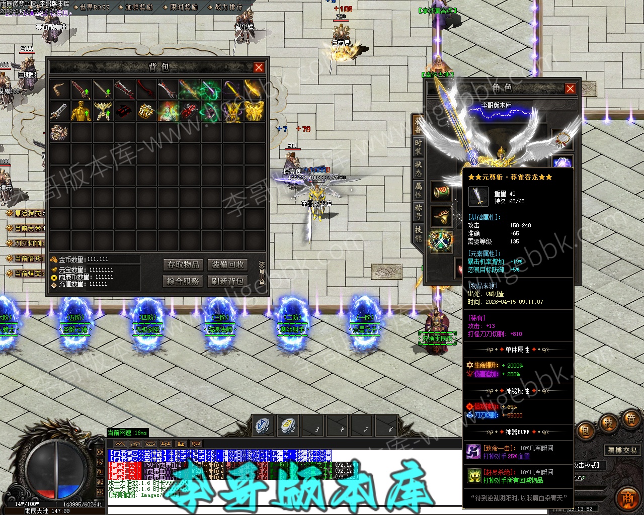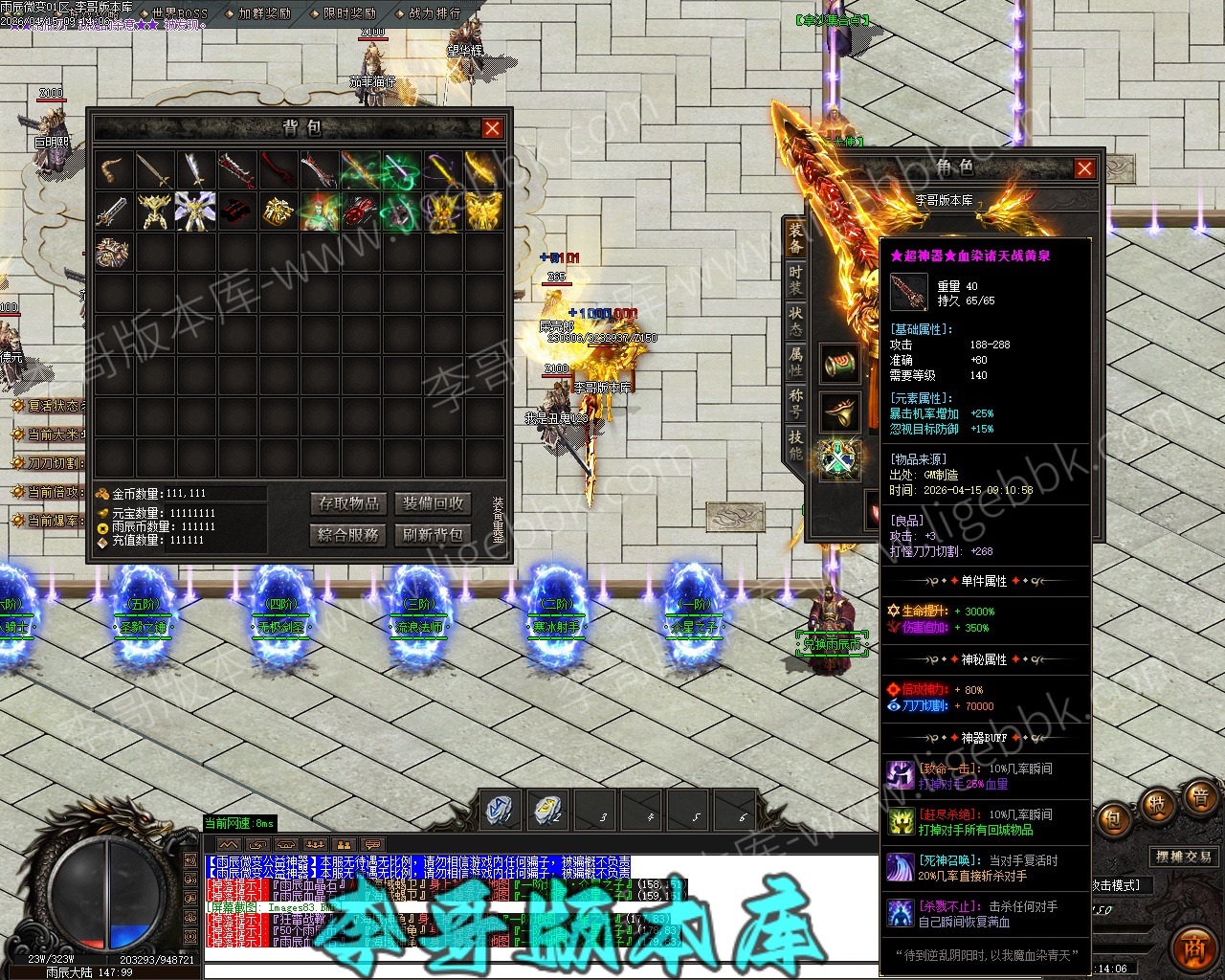 【付费购买】-雨辰微变无限刀单职业专属神器传奇服务端-ESP插件-自动回收-智能假人_GOM引擎