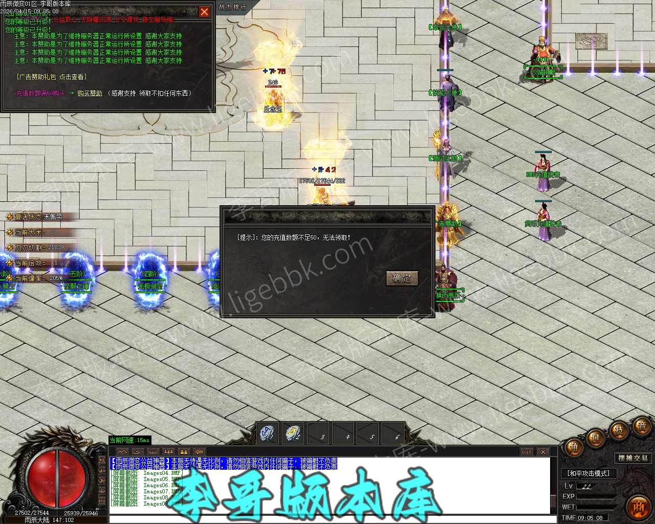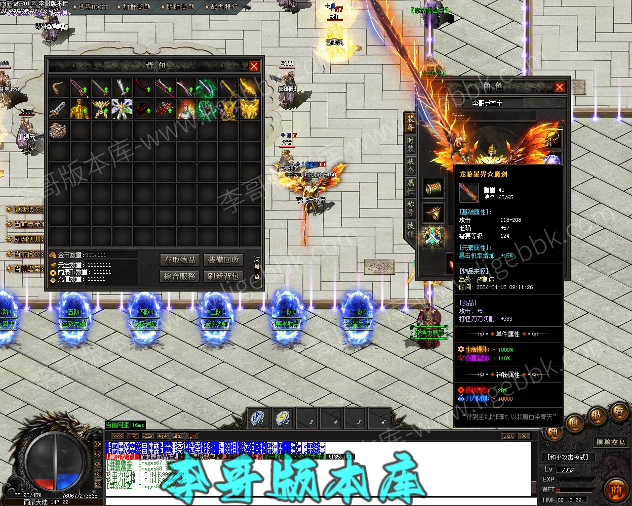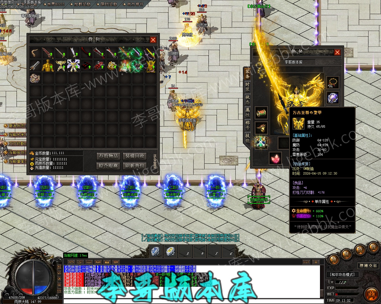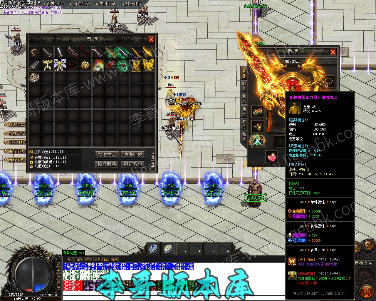 【付费购买】-雨辰微变无限刀单职业专属神器传奇服务端-ESP插件-自动回收-智能假人_GOM引擎